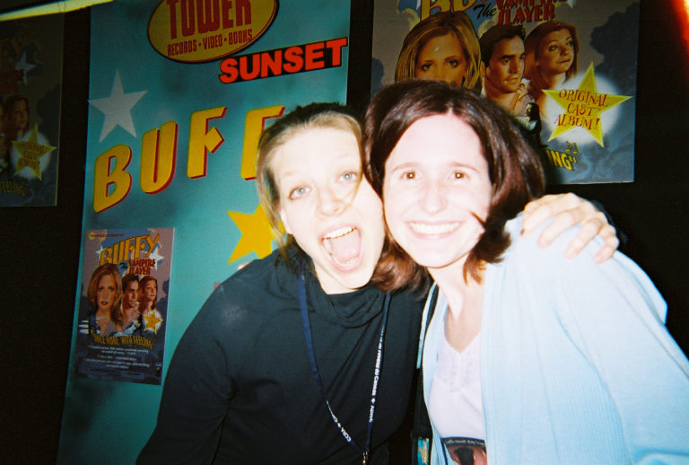 Joy woke me up at the crack of dawn (okay, not really, it was only 8 or something) to get ready. She took a shower and then I took a shower and we left in her car about 9 or so. We got to the Tower Records just after 10 and saw Xita and the other kittens and joined them. After a few minutes some of us decided that we wanted another copy of the CD, and Joy had to buy one for Shinnen, so we went inside the Tower Records and bought copies. Sometime later they asked us to move to the back, and the Kittens managed to get stuck into a corner by the dumpster. Bleh. So we stood in line and talked about a ton of things. I got to meet a lot of Kittens. After a while, we were asked if they could interview us Kittens for a thing for the season 6 DVD. We of course snatched that opportunity up. I stood somewhat in front, trying to cover my shirt a little because it was a Powerpuff Girls t-shirt, and PPG is Warner Bros. -_- So anyway, they asked us about a lot of things, like what we liked about OMWF. I said I liked it because there was so many elements; drama, comedy, action..etc. I mean, who didn't crack up when Anya said "It must be bunnies!"