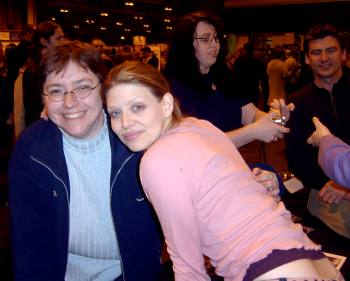 I remember queueing for autographs, and the woman infront of me handed Amber a file full of trading cards. Amber signed the cover, then proceded to go through the folder and sign all the cards which had Tara on it - there were about 8. A nice thing to do, as the rules stated we could only get one personal item signed.